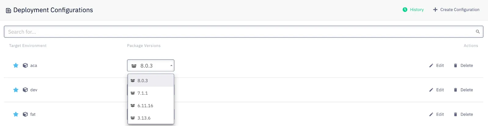 This enhancement in CodeNOW, focusing on the improvement of deployment configurations, allows users to use links between deployments and configurations, facilitating streamlined management and enabling more efficient configuration view that is grouping by environment.