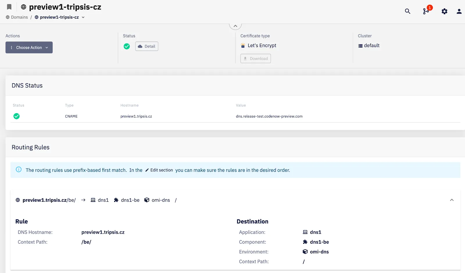 We redesigned the Custom Domains feature in CodeNOW version 7.6. This update enhances the flexibility and ease of managing custom domain routing rules, providing users with more control and streamlined workflows for their applications and deployments.
