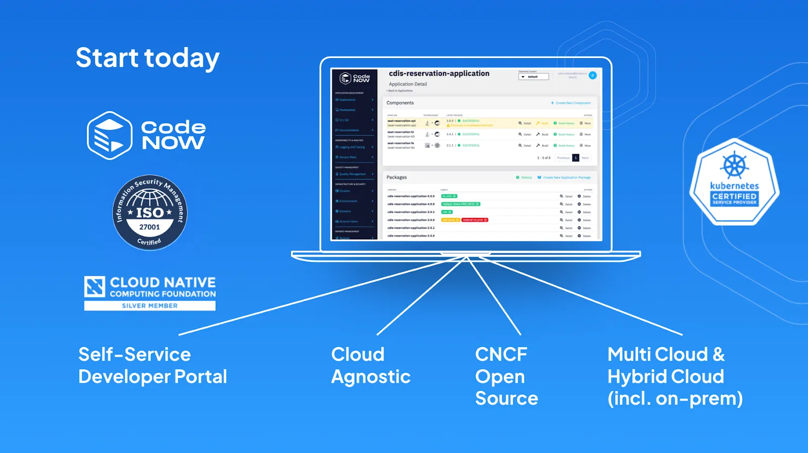 We developed CodeNOW, a multi-cloud and hybrid cloud platform, to help developers navigate the complexities of modern software development. Scaling development efforts can be costly and challenging, but CodeNOW streamlines this process, providing the tools and support teams need to achieve: