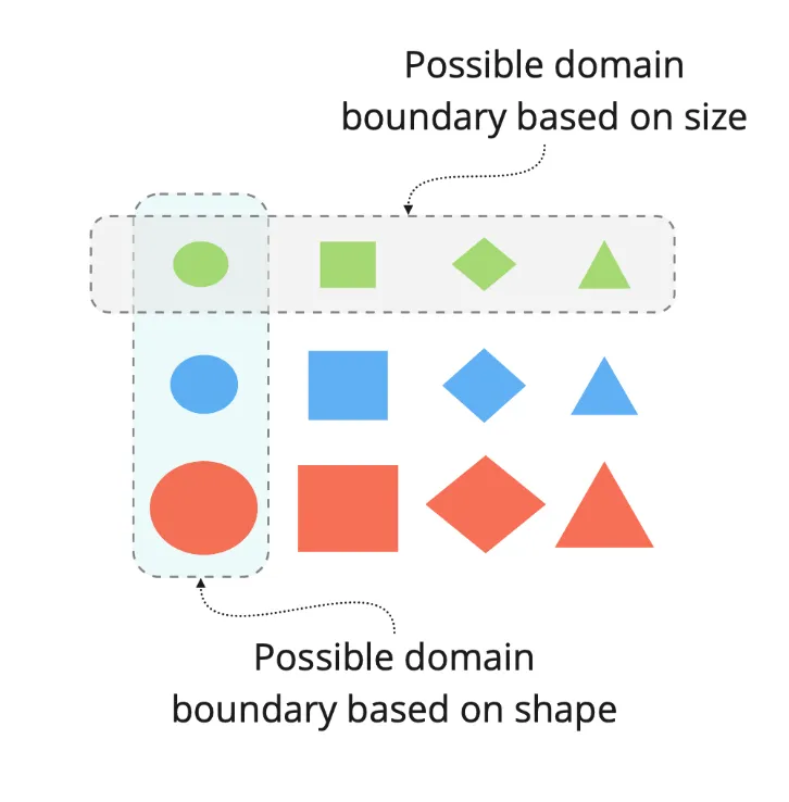 A domain is a set of things, defined by criteria that you choose. You might create a domain based on shapes or colors, and these domains can overlap. A familiar example is the business domain, where different elements interact within a company’s processes.