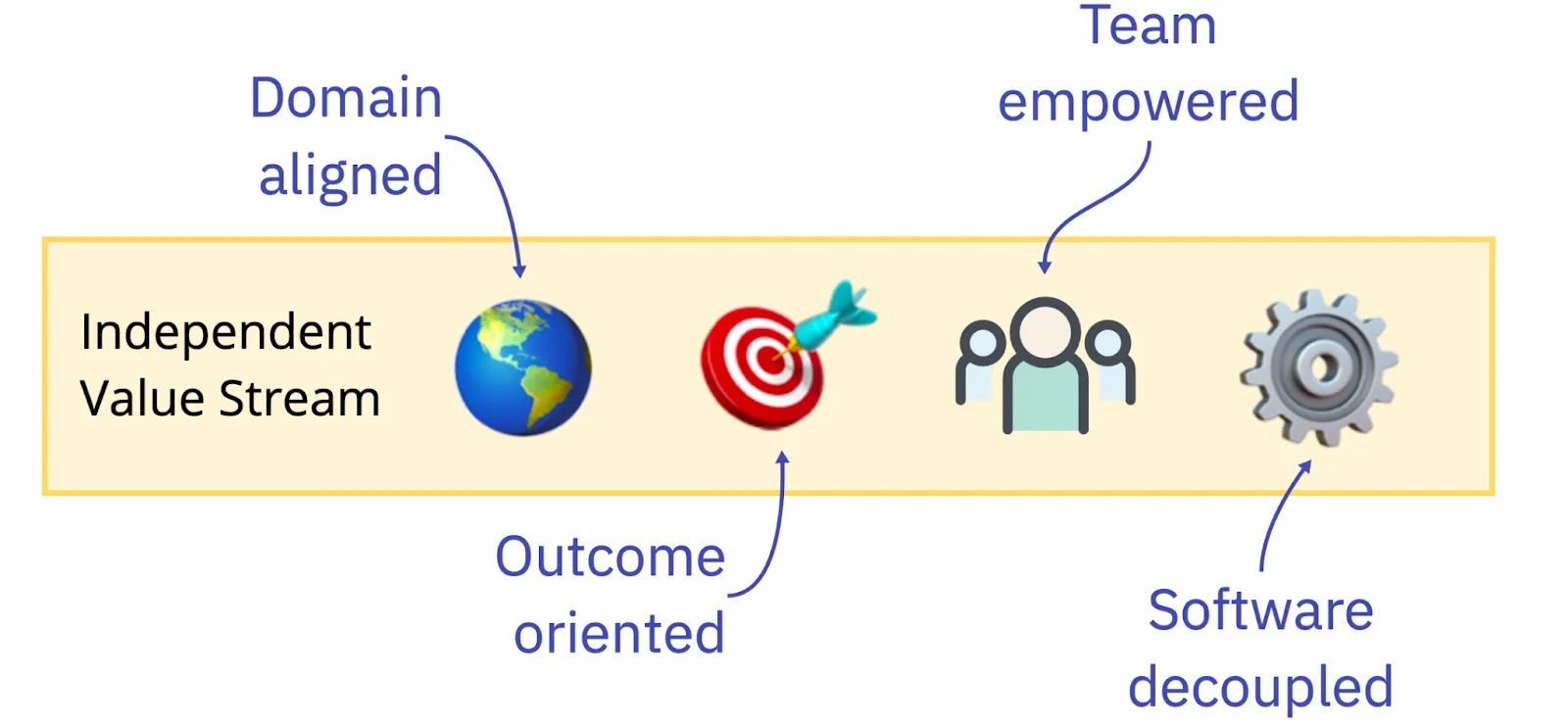 Successful projects rely on the concept of an independent value stream, which ensures that each team operates with autonomy and focus. For a value stream to deliver optimal results, it must align closely with a specific business domain. While horizontal processes spanning multiple domains may look structured on paper, they often create practical challenges.