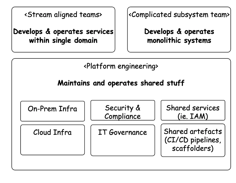 To maximize efficiency, teams should leverage existing platforms and shared services wherever possible, avoiding redundant development. For example, if a cloud provider offers a service discovery solution, teams should adopt it rather than having multiple teams build separate implementations. Centralizing and standardizing shared services across the organization ensures consistency, reduces technical debt, and allows developers to focus on delivering business value rather than reinventing the wheel.